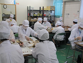 ◆一般企業の就労に結びつかなかった障害者を、就労機会の提供を通じて生産活動に係る知識及び能力の向上を図ることで、一般就労へ移行できるよう支援していきま。 「みずほでは主に所内でラスクの生産を行っており、天満屋ハピータウン・ハピーズ・ハピッシュなどの量販店から、山陽高校・大学・朝日高校・就実高校等と取引があり、今後も増えていく予定です。