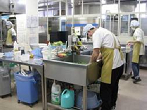 利用者の給食や地域で生活する障がい者の方の宅配弁当の調理補助、盛り付け